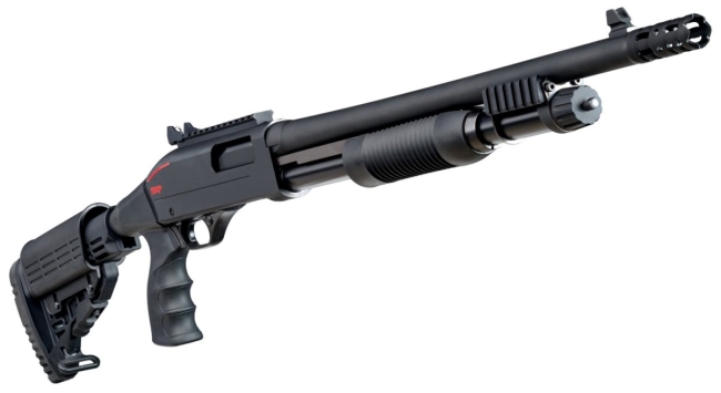 Model s pištolovou rukovätou, teleskopická pažba s lícnicou a pútkom na popruh, hlaven-tvrdochróm, dlžka 46cm (18"), hmotnost 3,2kg, kapacita zásobníka 5+1, mieridlá-nastavitelný cielnik gost ring a pevná muška + nasadená veaver lišta napr. pre kolimátor, vpredu pod hlavnou dvojitá wever lišta pod hlaven pre iné príslušebstvo, napr.laser, svetlo a pod., na ásti flashhider a Door breacher, (možnost namontovat choky (Invector Plus)